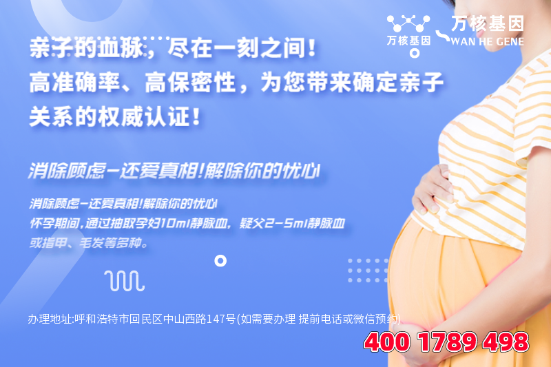 呼和浩特亲子鉴定基因检测,是一家专为呼和浩特周边城市地区服务的亲子鉴定咨询机构,呼和浩特dna胎儿亲子鉴定办理地址:呼和浩特市回民区中山西路147号(如需要办理 提前电话或微信预约)-预约电话:4001789498。
